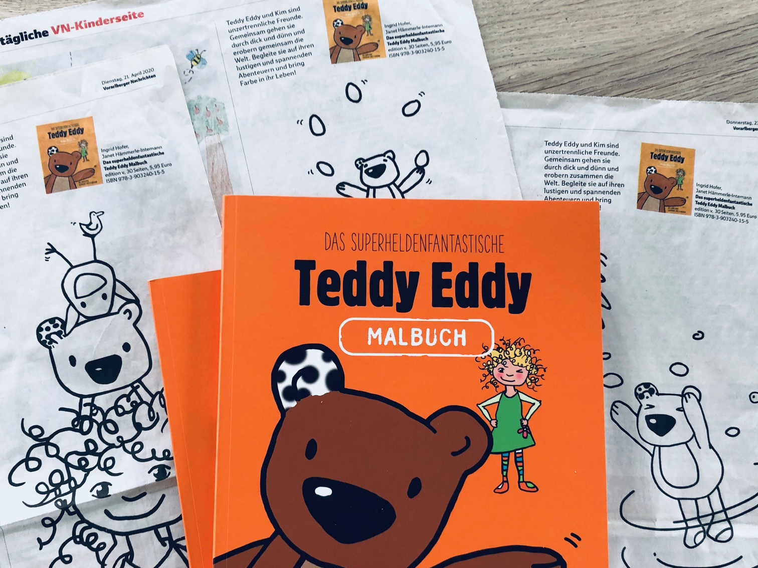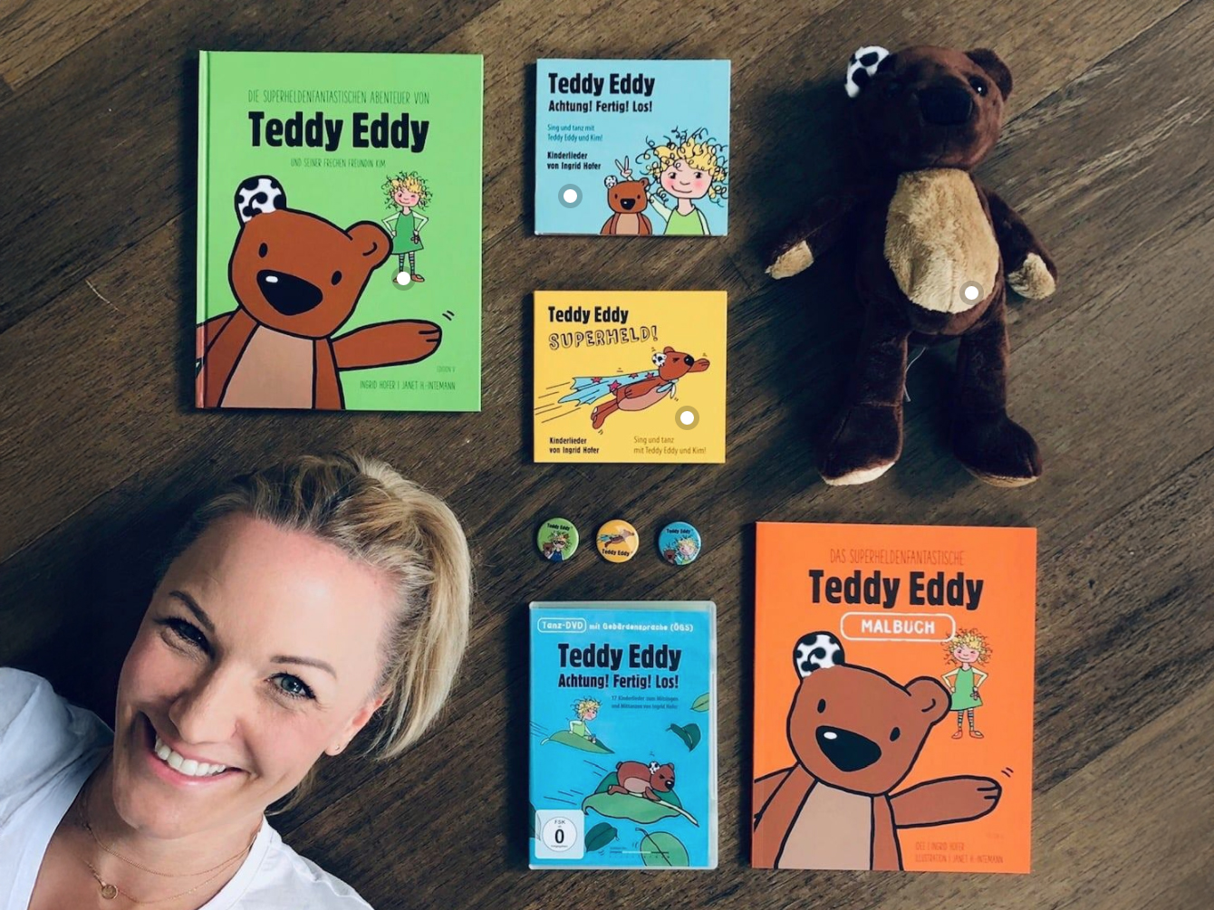 Als Ingrid Hofer mit ihren frechen Kindergeschichten und Liedern von Teddy Eddy zu mir kam, war noch nicht klar, wie der kleine Bär eigentlich aussehen sollte. Bären gibt es ja wie Sand am Meer! Die Idee, ihm ein „besonderes“ Ohr zu geben, machte ihn sofort unverwechselbar – und Teddy Eddy wurde sichtbar.